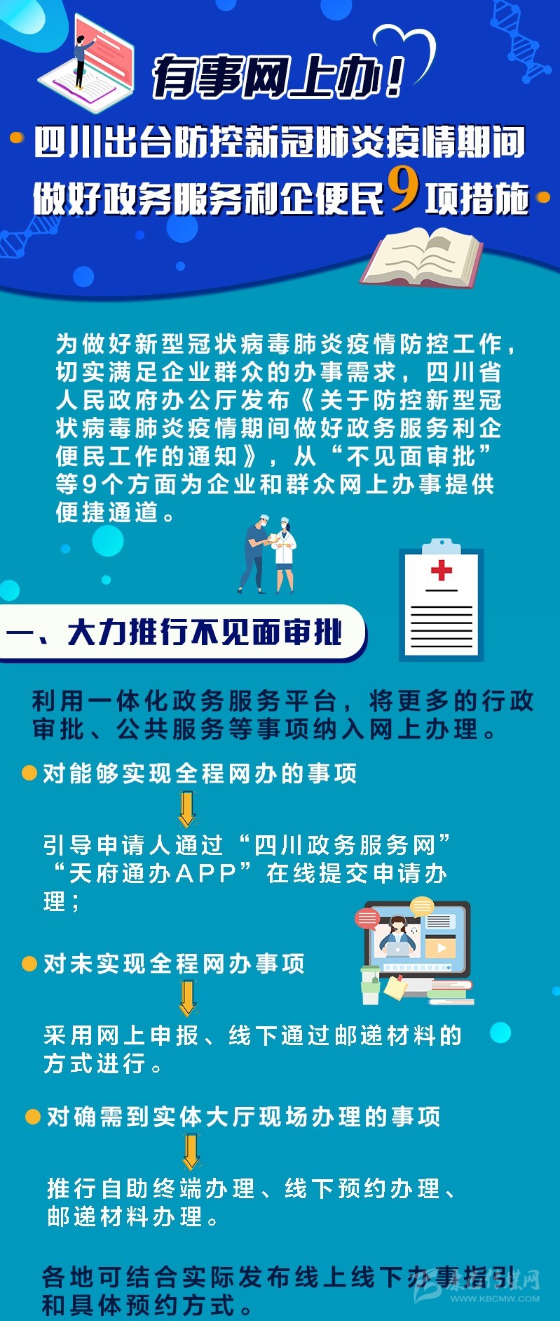 近日,四川省人民政府辦公廳印發(fā)了《關于防控新型冠狀病毒肺炎疫情期間做好政務服務利企便民工作的通知》。出臺眾多疫情防控期間利企便民舉措,明確具體辦理平臺和執(zhí)行流程,并將責任落實到各市(州)、縣(市、區(qū))政府,各部門機構(gòu)。