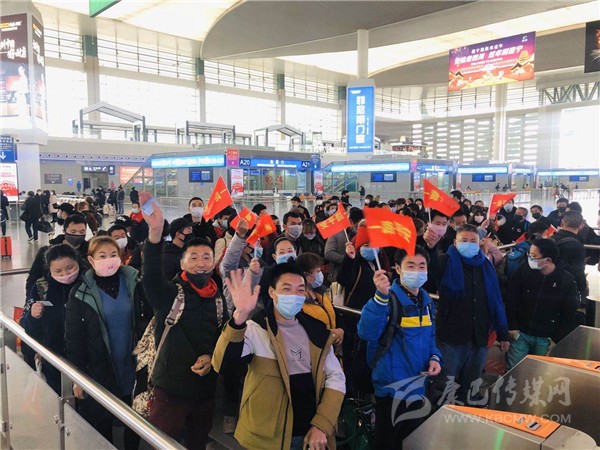 11:30分,D4755次返崗專列緩緩啟動。 站臺上的,前來送行的省農(nóng)民工服務(wù)中心工作人員們使勁揮起了雙手。車廂里,有的農(nóng)民工揮起了印有“一路平安”的小紅旗,有的隔著車窗豎起了大拇指……這讓省人社廳返崗服務(wù)專班交通保障組組長、省農(nóng)民工服務(wù)中心副主任秦家雷眼眶濕潤。秦家雷介紹,D4755次返崗專列的組織工作于2月18日開展,通過人社、交通、衛(wèi)健、鐵路等部門系統(tǒng),以及全省各市(州)、縣、鎮(zhèn)、村的大力配合,在不到兩天時間內(nèi),完成了917名返崗人員的摸排、健康體檢、車票購買諸多事項(xiàng),充分體現(xiàn)了各系統(tǒng)各部門對農(nóng)民工的關(guān)心關(guān)愛,對復(fù)工復(fù)產(chǎn)抗擊疫情的努力和信心。