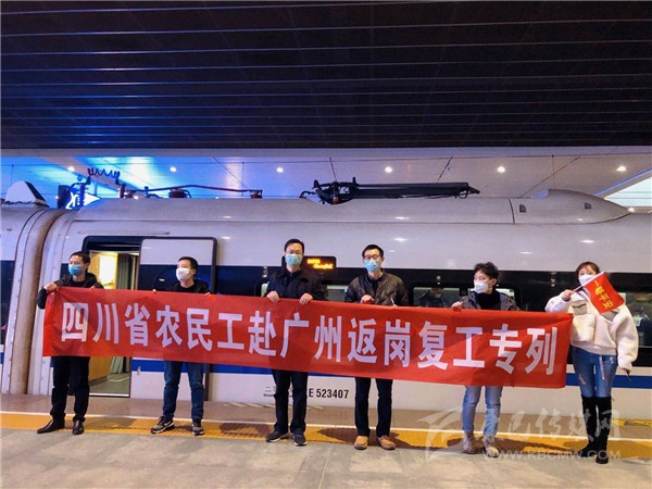 2月20日上午11:30,滿載著917名川籍農(nóng)民工的D4755次返崗專列,從成都東出發(fā)一路駛往廣州南。這是今年春節(jié)后我省首趟開往廣東省的農(nóng)民工返崗專列,也是我省與廣東在新冠病毒疫情期間勞務(wù)協(xié)作共識達(dá)成后,開行的首趟農(nóng)民工返崗專列。此次專列開行,極大滿足了疫情期間我省農(nóng)民工外出務(wù)工需求,同時也為廣東省企業(yè)復(fù)工復(fù)產(chǎn)提供了勞動力支持。此趟專列票務(wù)費(fèi)用由廣東省人社廳承擔(dān),農(nóng)民工免費(fèi)乘坐。