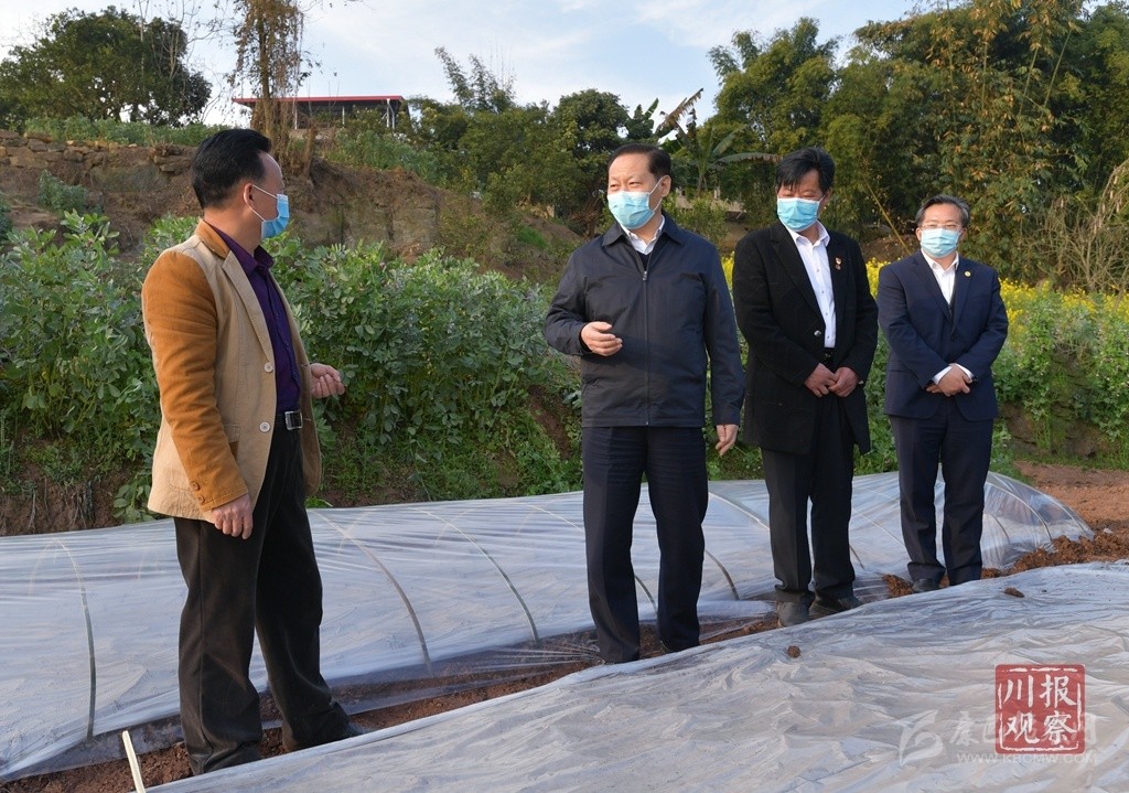 農(nóng)歷驚蟄時節(jié),田間地頭到處是機耕、播種、育秧的忙碌景象。彭清華來到瀘州市合江縣白米鎮(zhèn)斗笠村和自貢市榮縣雙石鎮(zhèn)大竹林村、蔡家堰村,實地了解農(nóng)村地區(qū)疫情防控、春耕備耕、生豬生產(chǎn)、農(nóng)民工外出務工等情況。