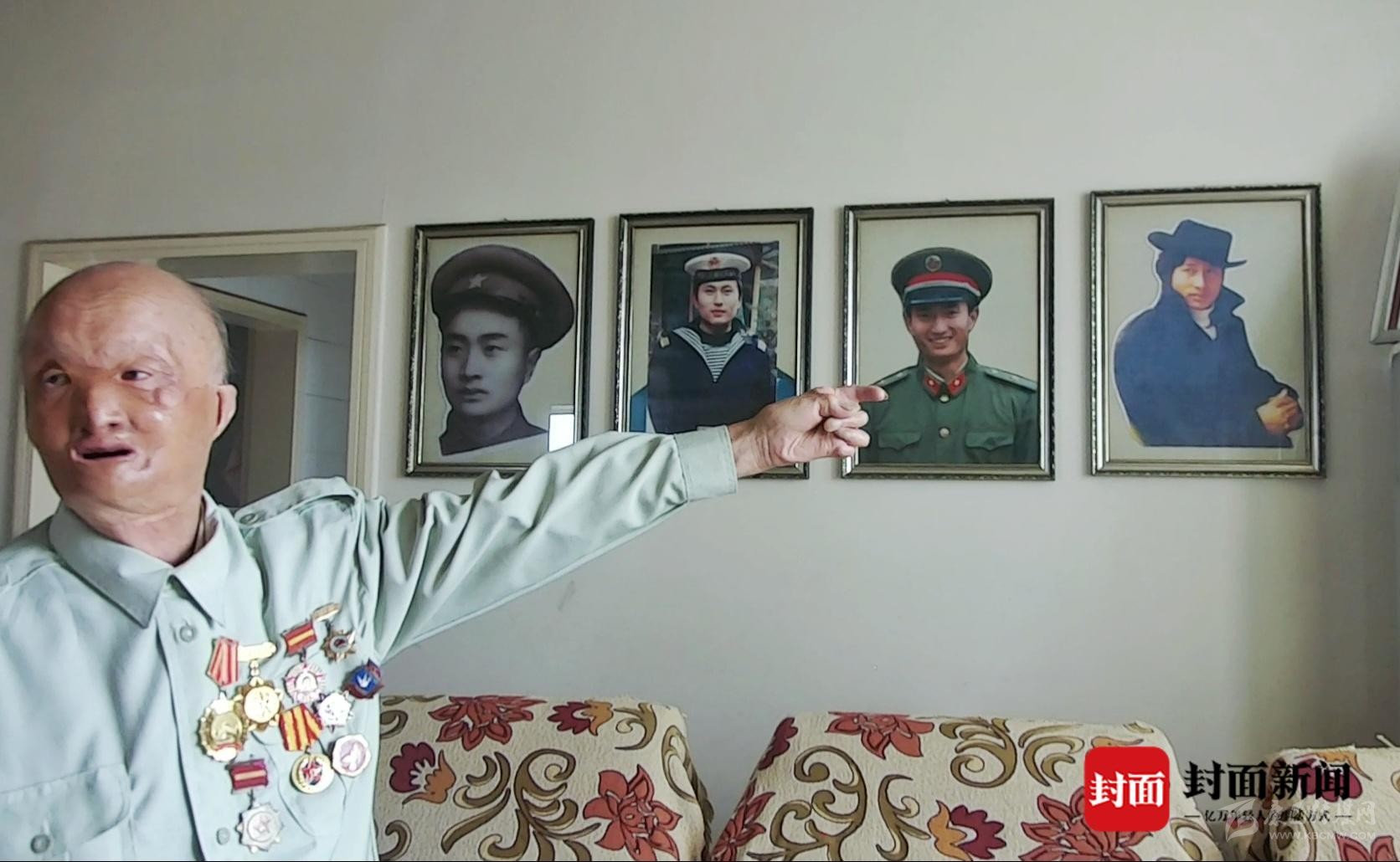 初見這位老人,他的面容讓人印象深刻。69年前那個冬天的朝鮮戰(zhàn)場上,是他一輩子最難忘的經(jīng)歷。年僅20歲的他遭遇敵機投擲的凝固汽油彈,導(dǎo)致面部、手部嚴(yán)重?zé)齻?,造成一級傷殘?/p>