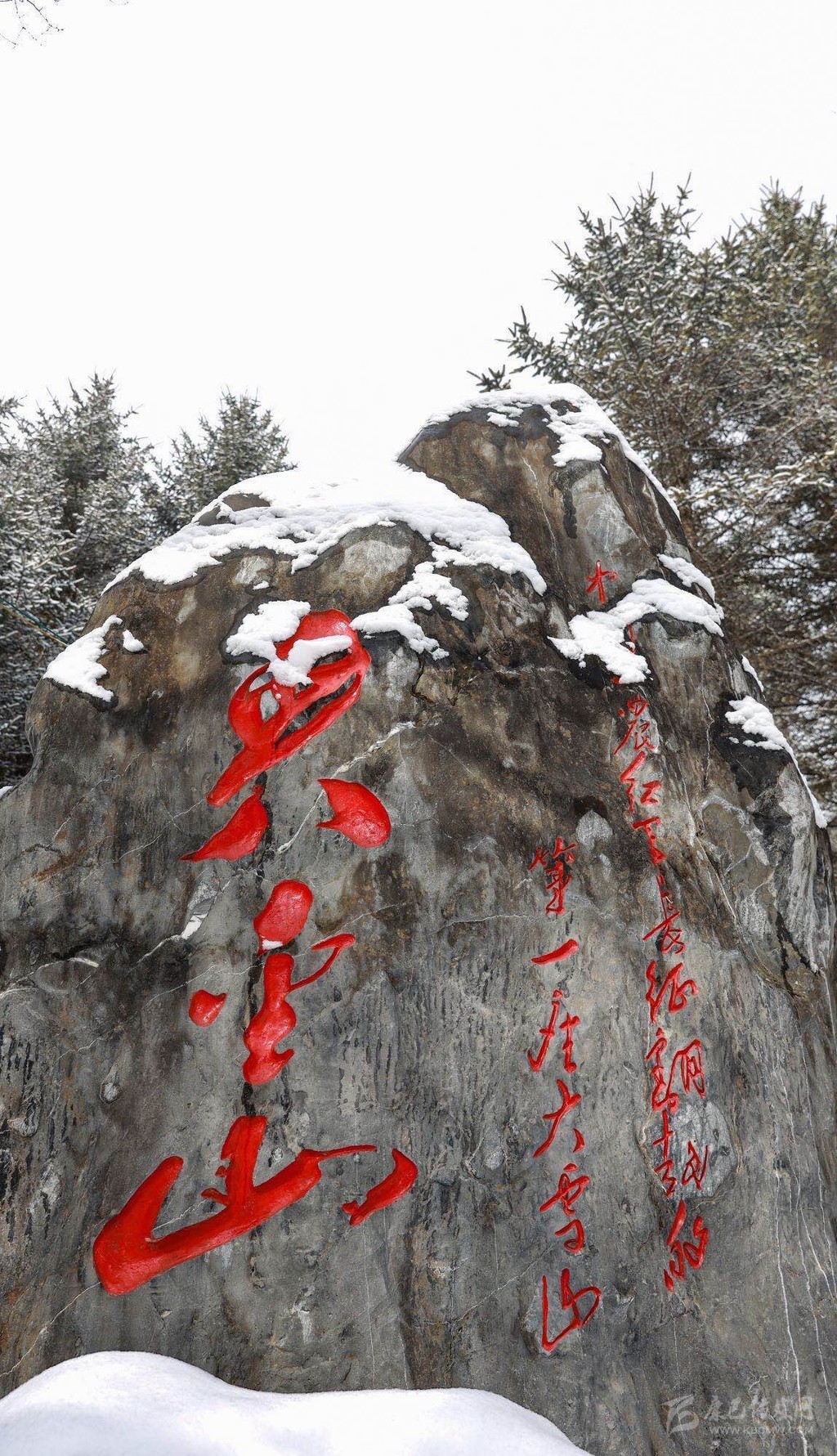 紅軍長征翻越夾金山紀(jì)念地被白雪覆蓋的石碑