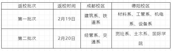 按照“錯時、錯峰、錯層次”總體原則,具體返校批次如下: