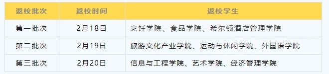 全體學生于2月19日、20日返校報到,20日各書院輔導員組織學生進行收假集中點到,上報未返校學生名單至學務部。2月21日正式行課。