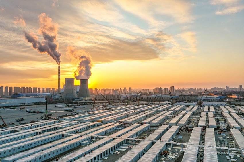 這是3月20日傍晚拍攝的吉林市高新南區(qū)隔離方艙建設(shè)現(xiàn)場。 新華社 發(fā)