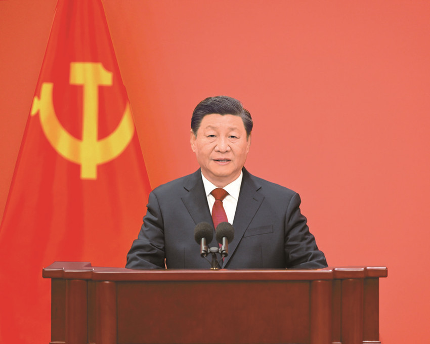 10月23日,剛剛在中國共產(chǎn)黨第二十屆中央委員會第一次全體會議上當(dāng)選的中共中央總書記習(xí)近平和中共中央政治局常委李強(qiáng)、趙樂際、王滬寧、蔡奇、丁薛祥、李希在北京人民大會堂同采訪中共二十大的中外記者親切見面。這是習(xí)近平發(fā)表重要講話。 新華社記者 李學(xué)仁 攝