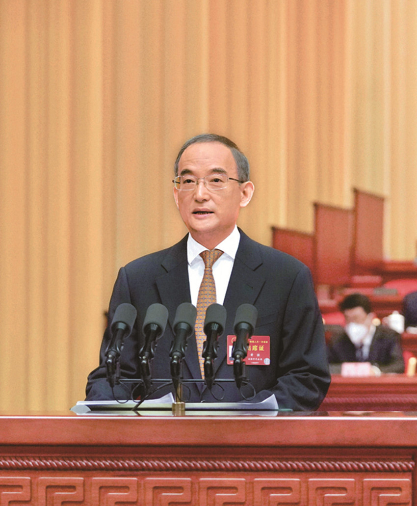 在熱烈的掌聲中,黃強作政府工作報告。報告分四個部分:一、過去五年和2022年工作回顧;二、今后五年發(fā)展主要目標(biāo)和重點任務(wù);三、2023年工作安排建議;四、更好肩負(fù)新征程政府職責(zé)使命。