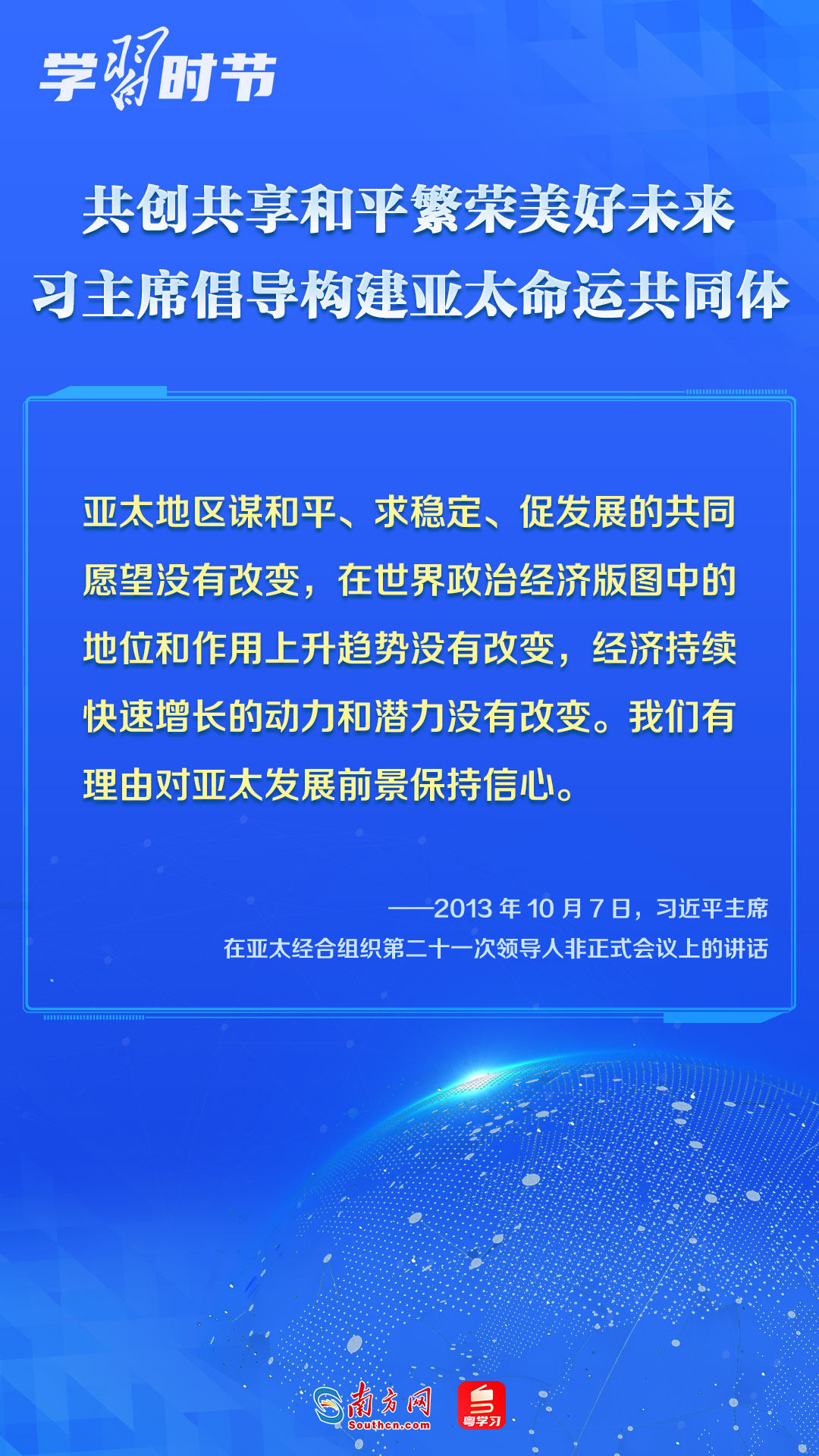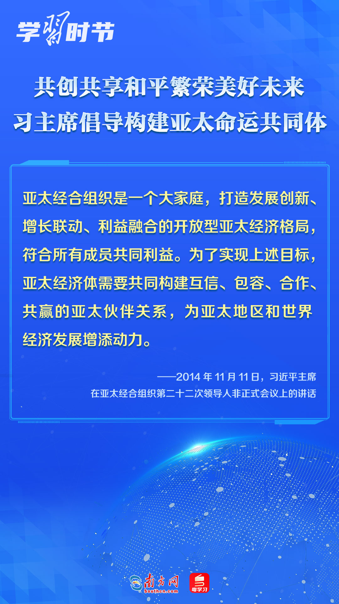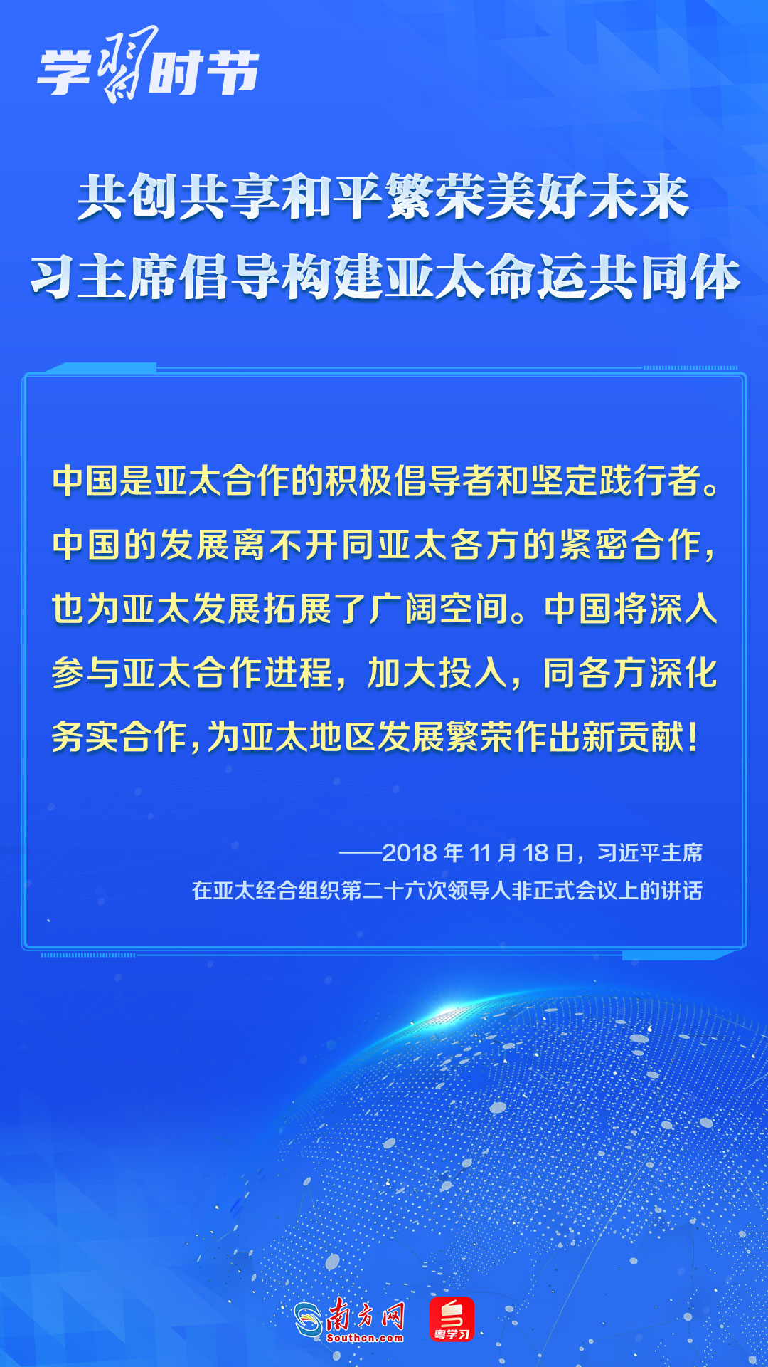 中國一直是APEC的積極參與者、貢獻者,為推動建設(shè)亞太大家庭發(fā)揮了重要作用。習(xí)近平主席多次出席APEC會議,以中國主張促進亞太合作,以中國貢獻推動亞太發(fā)展,以中國智慧凝聚亞太共識,多次闡述構(gòu)建開放包容、創(chuàng)新增長、互聯(lián)互通、合作共贏的亞太命運共同體的理念主張和重大意義,讓我們一同學(xué)習(xí)。