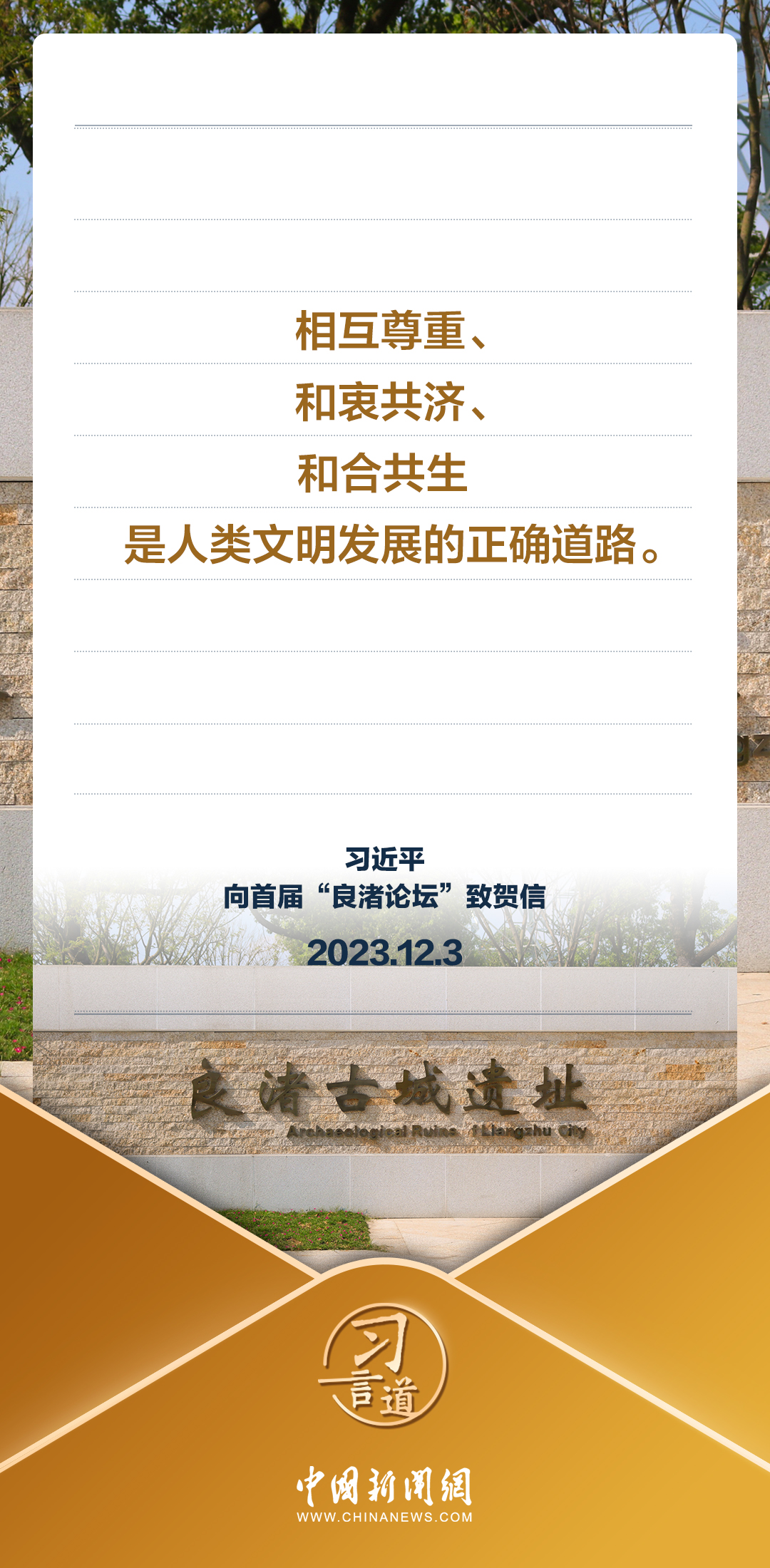12月3日,國家主席習(xí)近平向首屆“良渚論壇”致賀信。習(xí)近平指出——