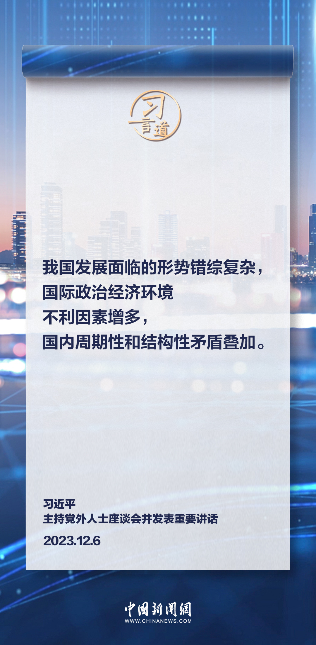 12月6日,中共中央在中南海召開黨外人士座談會,就今年經(jīng)濟(jì)形勢和明年經(jīng)濟(jì)工作聽取各民主黨派中央、全國工商聯(lián)負(fù)責(zé)人和無黨派人士代表的意見和建議。中共中央總書記習(xí)近平主持座談會并發(fā)表重要講話。