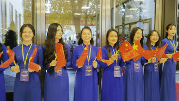 習(xí)近平總書記和夫人彭麗媛抵達(dá)國(guó)家會(huì)議中心時(shí),受到越方青年代表熱烈歡迎。