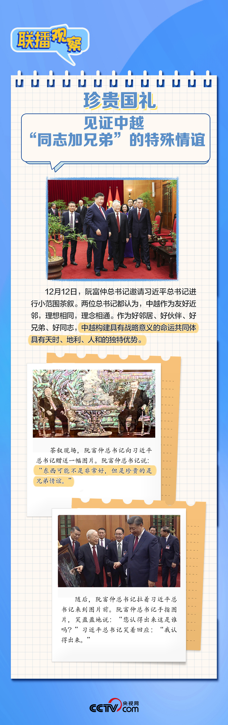 聯(lián)播+“到鄰居家串門(mén)、到同志家做客”是中越兩黨兩國(guó)傳統(tǒng)友誼的生動(dòng)寫(xiě)照。