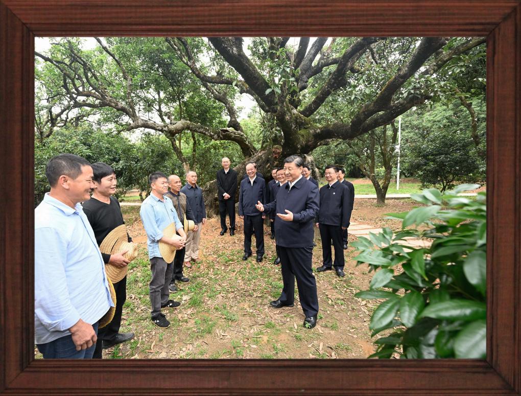 12月31日晚,國家主席習(xí)近平發(fā)表二〇二四年新年賀詞。 推近、定格、銘記,透過總書記身后書架上的一張張照片,我們記住過去,也對未來充滿信心。 不變的情懷 幾張老照片,在書架上擺放多年,人們已經(jīng)非常熟悉。 習(xí)近平同志青年時期的軍裝照,連續(xù)第3年出現(xiàn),擺放在書架醒目位置。 這令人不由得想起10年前的一段暖心對話—— 2013年11月,湖南十八洞村,村民石拔三老人見到了來此考察的習(xí)近平總書記。 “怎么稱呼您?”“我是人民的勤務(wù)員?!?/p> 歲月流轉(zhuǎn),初心不改。從照片上的青年,到人民的勤務(wù)員,“我將無我,不負人民”的赤子情懷始終如一。 家庭是個人溫馨的港灣。習(xí)近平同志一家三口和父親習(xí)仲勛在一起、習(xí)近平同志在福州時帶女兒玩的照片,自總書記第一次發(fā)表新年賀詞以來,就一直擺在書架上。 2023年,又有幾張新的總書記家庭照片映入眼簾。 一張是習(xí)仲勛同志的單人照。 2023年是習(xí)仲勛同志誕辰110周年。習(xí)近平總書記從小深受父親影響,形容父親“像一頭老黃牛,為中國人民默默地耕耘著”,“這也激勵著我將自己的畢生精力投入到為人民群眾服務(wù)的事業(yè)中,報效養(yǎng)育我的錦繡中華和父老鄉(xiāng)親”。 同夫人彭麗媛在深圳錦繡中華景區(qū)的留影、習(xí)近平夫婦懷抱女兒的合影,也是第一次出現(xiàn)在書架上。 天下之本在家。習(xí)近平總書記指出,家庭和睦則社會安定,家庭幸福則社會祥和,家庭文明則社會文明。 修身、齊家,家好、國更好。習(xí)近平總書記率先垂范,對家人的責(zé)任、對家風(fēng)的傳承、對家教的認真令人動容。 不停的步履 11張2023年拍攝的照片,留下習(xí)近平總書記過去一年治國理政的經(jīng)典瞬間。 2023年,習(xí)近平總書記共進行了16次國內(nèi)考察,出訪4次,在國內(nèi)數(shù)十次會晤到訪的各國各界人士。 將鏡頭拉遠,總書記的身影不辭萬里—— 向南,習(xí)近平總書記來到位于我國大陸最南端的廣東省湛江市徐聞縣;向北,考察中國最北端的黑龍江省漠河市北極村;向西,視頻連線守衛(wèi)祖國西大門的新疆軍區(qū)紅其拉甫邊防連執(zhí)勤哨所。 這張同紅其拉甫邊防連執(zhí)勤哨所等進行視頻通話的拼版照片,正是書架上的新照片之一。 “黃河九曲、長江奔流,總讓人心潮澎湃、豪情滿懷。”2023年,長江流經(jīng)的11個省市里,習(xí)近平總書記考察了4個;黃河沿線的9個省區(qū)里,考察了5個;大運河涉及的8個省市里,考察了5個。 北瀕長江、南臨廬山、東枕鄱湖,江西九江的中國石化九江分公司位置特殊。10月,習(xí)近平總書記來到這里時,員工們圍攏過來紛紛向總書記問好。 總書記親切地說,希望你們按照黨中央對新型工業(yè)化的部署要求,堅持綠色、智能方向,扎扎實實、奮發(fā)進取,為保障國家能源安全、推動石化工業(yè)高質(zhì)量發(fā)展作出新貢獻。 “追求卓越 勇創(chuàng)一流”——墻上的標(biāo)語仿佛大家的回應(yīng)。這一幕,也被相機定格。 將鏡頭推近,總書記的關(guān)切無微不至—— 這是對生產(chǎn)的關(guān)心。 萬畝甘蔗林中,習(xí)近平總書記同身著民族服裝的蔗農(nóng)走在一起,大家的笑容像甘蔗一樣甜。總書記“為保障國家糖業(yè)安全、促進蔗農(nóng)增收致富發(fā)揮更大作用”的叮嚀深入人心。 古老荔枝樹下,總書記同現(xiàn)場技術(shù)人員親切交流,指出要著力做好“土特產(chǎn)”文章,以產(chǎn)業(yè)振興促進鄉(xiāng)村全面振興。 這是對企業(yè)的關(guān)注。 9月,習(xí)近平總書記來到浙江義烏國際商貿(mào)城考察,人們紛紛從商鋪中走出來,掌聲、問候聲、歡呼聲此起彼伏。 面對商戶、小企業(yè)主們,總書記點贊道:“義烏小商品闖出了大市場、做成了大產(chǎn)業(yè),走到這一步很了不起,每個人都是參與者、建設(shè)者、貢獻者?!?/p> 這是對人民的關(guān)懷。 2023年,華北、黃淮等地出現(xiàn)極端降雨,引發(fā)洪澇和地質(zhì)災(zāi)害。 北方入冬之際,習(xí)近平總書記來到北京、河北受災(zāi)較重的相關(guān)地區(qū),看望慰問受災(zāi)群眾。書架上這張照片,便是總書記在北京門頭溝妙峰山鎮(zhèn)水峪嘴村考察時留下的。 一度被洪水淹沒的水峪嘴村已經(jīng)修葺一新,村民家中窗明幾凈、暖氣充足。 少年兒童的成長,習(xí)近平總書記一直牽掛在心,書架上多次出現(xiàn)總書記同孩子們在一起的場景。 2023年精選的,是一張習(xí)近平總書記在北京育英學(xué)校的照片。 看到孩子們正在學(xué)生農(nóng)場勞動,總書記關(guān)心地說:“希望同學(xué)們從‘學(xué)農(nóng)’中感受到農(nóng)作的艱辛和農(nóng)民的不易,從小養(yǎng)成熱愛勞動、珍愛糧食、尊重自然的良好習(xí)慣,為建設(shè)美麗中國作貢獻。” 不竭的力量 國徽高懸,熠熠生輝。這是一個歷史性的瞬間。 2023年3月10日,北京人民大會堂。全票當(dāng)選國家主席、中央軍委主席的習(xí)近平,左手撫按《中華人民共和國憲法》,右手舉拳,面向近3000名全國人大代表,鄭重宣誓。 錚錚誓言,響徹人民大會堂,回蕩在960萬平方公里土地上,回蕩在億萬中華兒女心中。 重溫激動人心的一刻,我們信心十足、精神百倍。 信心,來自堅強的領(lǐng)導(dǎo)核心—— 書架上,擺放著習(xí)近平總書記在內(nèi)
