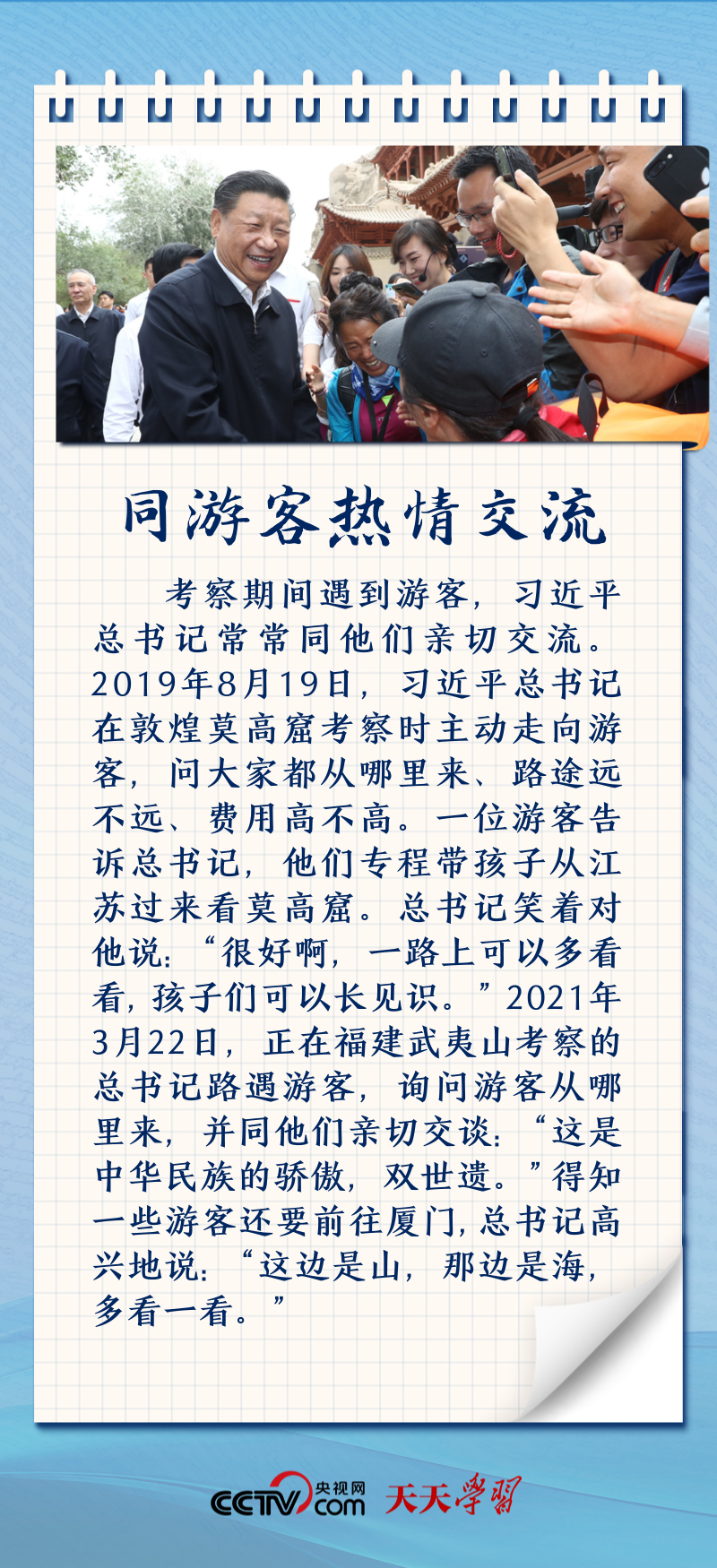 “旅游是綜合性產(chǎn)業(yè),是拉動(dòng)經(jīng)濟(jì)發(fā)展的重要?jiǎng)恿?。”?xí)近平總書(shū)記高度重視發(fā)展旅游業(yè)。央視網(wǎng)《天天學(xué)習(xí)》與您一起重溫總書(shū)記關(guān)心指導(dǎo)旅游業(yè)發(fā)展的“微鏡頭”。