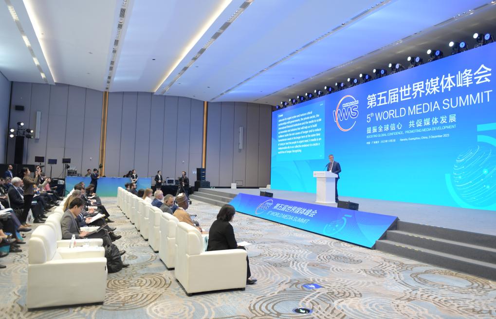 ??2023年12月4日,以“提振全球信心 共促媒體發(fā)展”為主題的第五屆世界媒體峰會在廣州南沙舉行平行分論壇活動,嘉賓在分論壇上發(fā)言。新華社記者 盧漢欣 攝