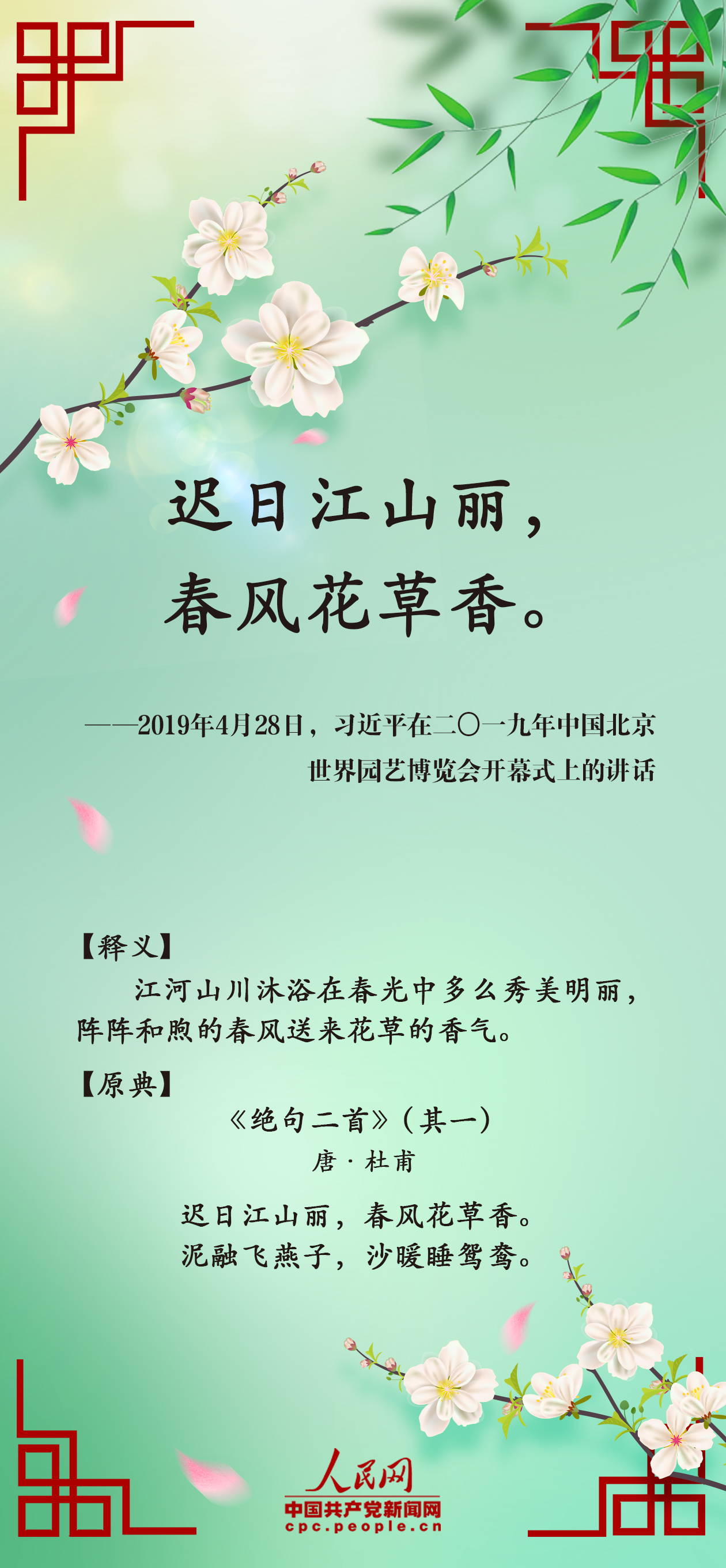 春是新的開(kāi)始,是萬(wàn)物生發(fā)、欣欣向榮的美好時(shí)節(jié)。習(xí)近平總書記曾多次引經(jīng)據(jù)典,用詩(shī)文名句展現(xiàn)生機(jī)盎然的春天景象。一年之計(jì)在于春,一起領(lǐng)會(huì)中華傳統(tǒng)文化的深刻內(nèi)涵,凝聚蓬勃向上的發(fā)展之力。