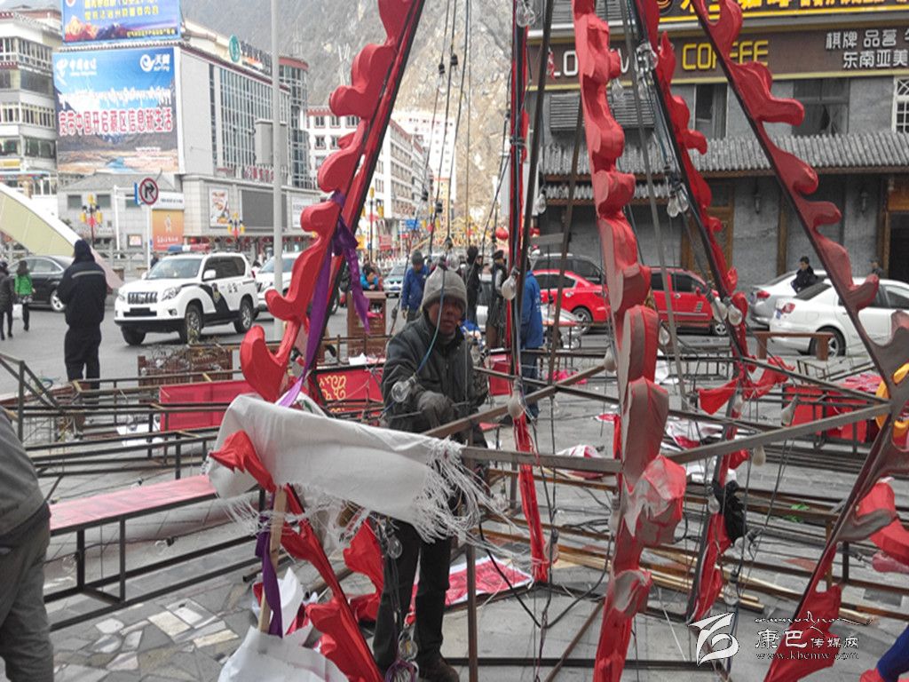 在新春來臨之際,記者在康定街頭發(fā)現(xiàn)有不少的彩燈裝飾師傅正忙碌地制作、安裝新春燈飾。