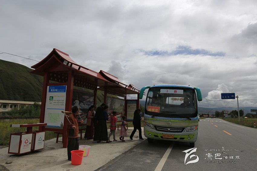 甘孜縣公交車開進鄉(xiāng)村。