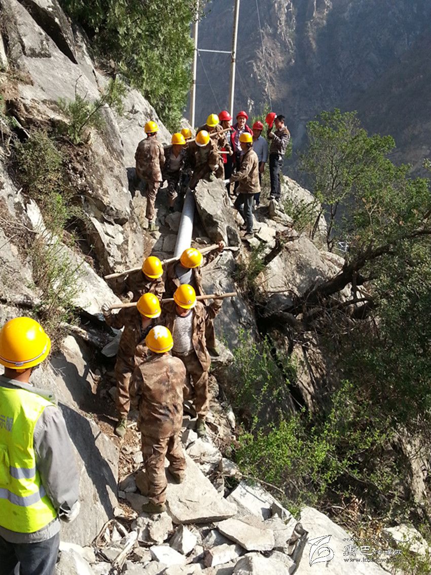 崇山峻嶺,羊腸小道,運送變壓器器材只能靠人工,施工隊人手不夠,村民主動參與,齊心協(xié)力將器材運送到數(shù)公里以外的建設工地。