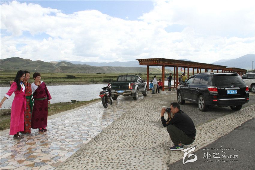 圖為游客在理塘濯桑無(wú)量河觀景臺(tái)拍照留影。