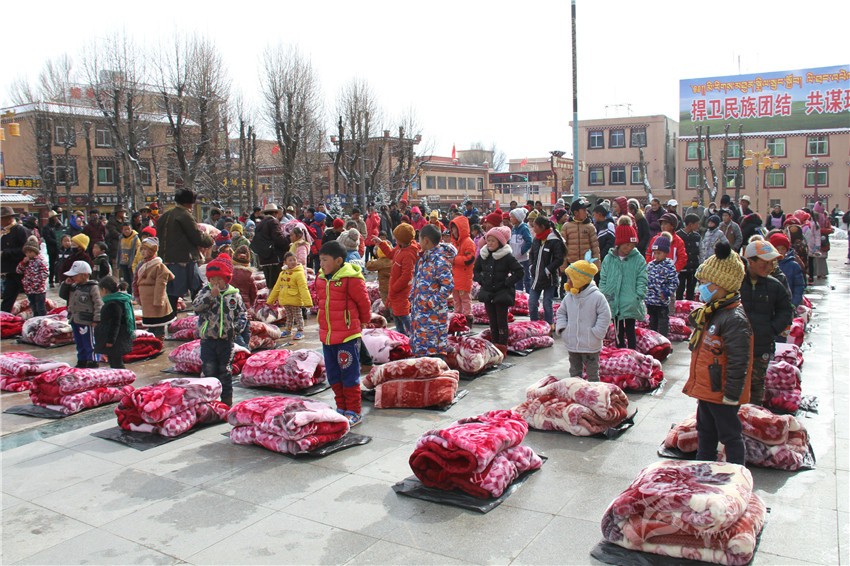 本網(wǎng)訊(葉強(qiáng)平 文/圖)元旦前夕,理塘縣關(guān)心下一代工作委員會(huì)在縣城格薩爾廣場(chǎng)舉行了“老少牽手·溫暖童心”暖冬行動(dòng),100名貧困學(xué)生領(lǐng)到爺爺、奶奶們捐贈(zèng)的“愛(ài)心”毛毯。