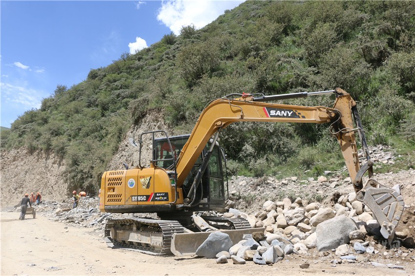 “大家再加把勁哦,早點(diǎn)把公路堡坎砌好,就可以平整路面了。”7月25日,在甘孜縣城前往扎科鄉(xiāng)的甘扎路上,修砌路基的工人們頭頂烈日,揮汗如雨,一臺(tái)臺(tái)工程機(jī)械或是揮舞著長(zhǎng)臂,或是平整著地面,熱火朝天的建設(shè)場(chǎng)面隨處可見(jiàn)。