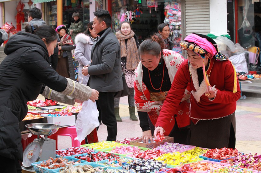 春節(jié)藏歷新年將至,理塘縣各族群眾開始為新春藏歷新年忙活起來,大街小巷人頭攢動,有的全家出動購置年貨,濃濃的年味在世界高城涌動。2月7日,理塘縣各大超市、商店迎來了銷售旺季,店家將酒水、堅果炒貨、糖果餅干等各類年貨分門別類,放在最顯眼的位置,便于顧客挑選。(縣委中心報道組 葉強(qiáng)平 胡歡 攝影報道)