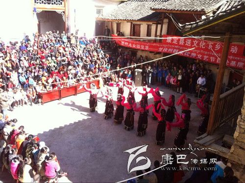 12月2日,康定縣捧塔鄉(xiāng)捧塔寺內(nèi)人頭攢動,熱鬧非凡,由康定縣旅游文化局組織的送文化下鄉(xiāng)惠民演出吸引了周邊的眾多群眾前來觀看。 演出在州歌舞團(tuán)演員歡快的舞蹈中拉開帷幕。一曲曲耳熟能詳?shù)母枨⒁恢е崆檠笠绲奈璧笧檗r(nóng)牧民群眾送上了一份文化厚禮。演出結(jié)束,意猶未盡的捧塔村民說:“今天一大早我就等在這里,農(nóng)村的文化生活簡單枯燥,好久沒有看到這么精彩豐富的文藝節(jié)目了,它不但豐富了我們的文化生活,還宣傳了黨的惠民政策,這樣的方式比傳統(tǒng)的開會宣傳更能讓大家知曉、熟記各項富農(nóng)惠民政策,也更受大家歡迎,希望這樣的活動以后能多多舉辦。”圖為演出現(xiàn)場。(李瑤 攝影報道)