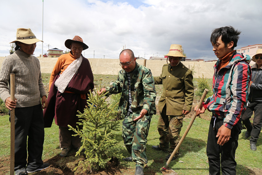 林業(yè)人員正在指導(dǎo)牧民植樹。
