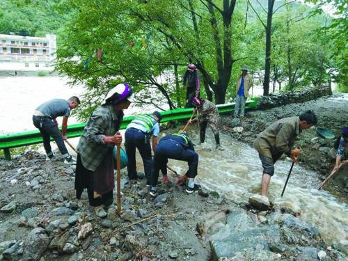7月10日23點左右太平橋鄉(xiāng)納粘村遭受泥石流災(zāi)害,當(dāng)?shù)佚X大覺(小地名)鋼架橋被砂石淹沒隨時可能被沖翻,剛派來駐村的駐村工作組隊員羅中爾哈和鐘迪發(fā)現(xiàn)險情后,立即啟動防御預(yù)案,組織村支兩委及部分黨員和村民清理路面障礙,開挖排水,用石頭磊筑應(yīng)急防護墻,防止泥石流沖翻鋼橋,確保通往外界的唯一一座橋梁暢通。
