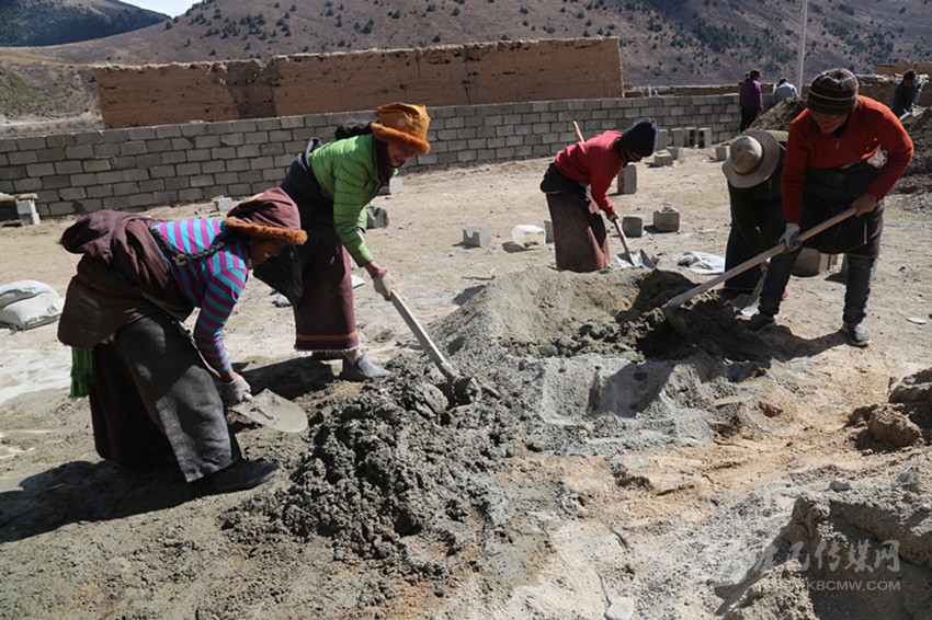 在工程實(shí)施中,全組的村民相互幫助,齊心協(xié)力建新房?!白蛱齑蠹?guī)臀野逊孔有薜冒桶瓦m適、漂漂亮亮的。我也來幫四郎曲西建房。這樣你幫我,我?guī)湍?,你幫他,要不了多久,我們這里家家戶戶都會(huì)很漂亮?!闭谠鹤永飻嚢杌覞{的村民格絨多登微笑著說。