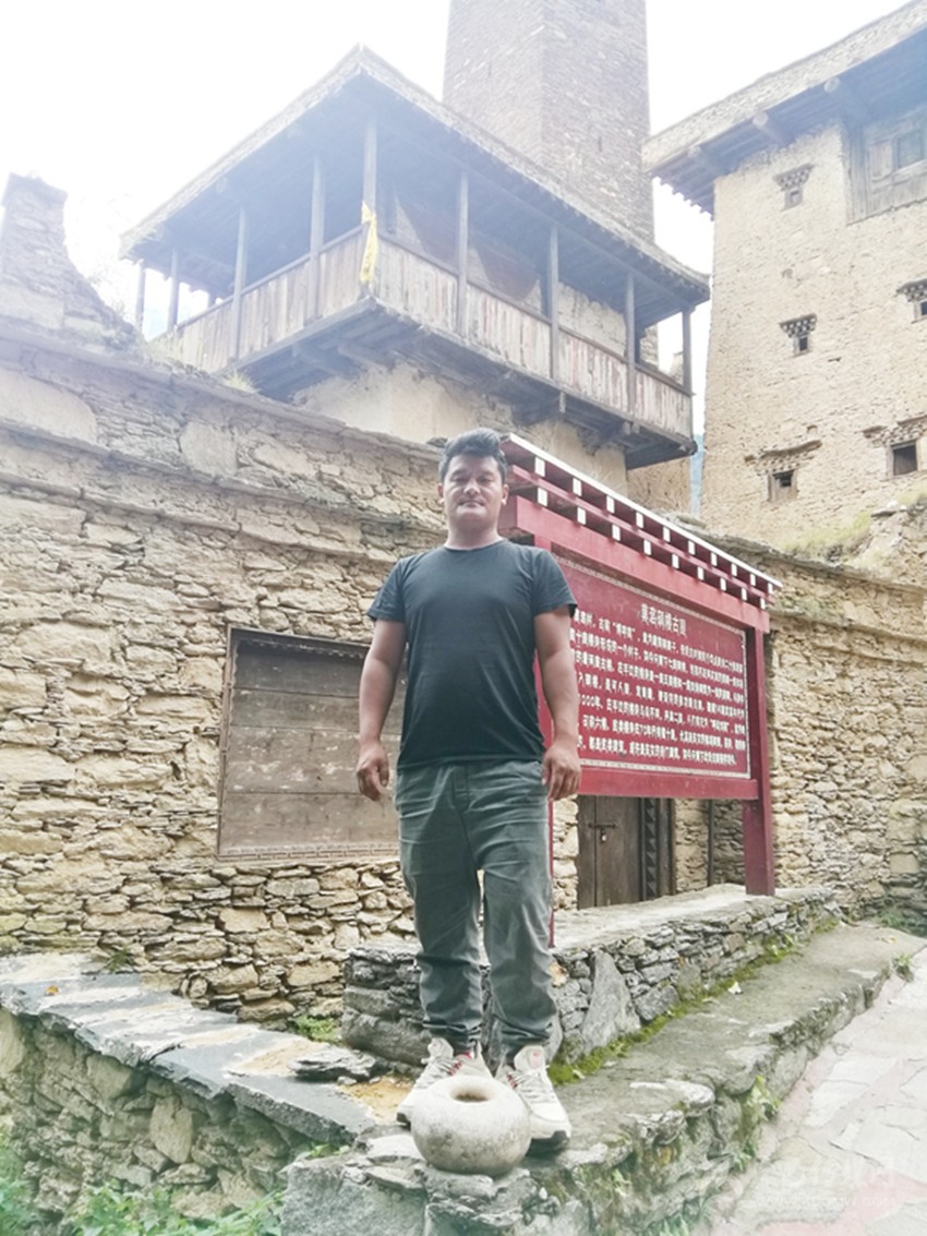 如今,莫洛村只剩下七座碉樓,其中包括殘碉和古樓。在該村1組28號(hào),一座古樓和一座四角碉筑為一體的家碉是代表之一。從古樓可進(jìn)入碉樓,是可人居、宜畜藏、便設(shè)防的多功能古屋,該古屋是全村唯一保存至今的古建筑,也是記者一行此次采訪的“主角”。