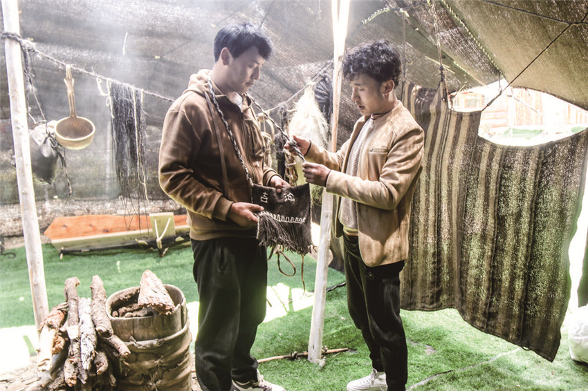 “這個掛包是牧民用牛毛純手工制作,一個掛包可賣上千元,游客們都喜歡?!睜柤棠氛f,吉滄民宿也是展示當?shù)匚膭?chuàng)產(chǎn)品和農(nóng)特產(chǎn)品的一個窗口,讓游客能夠在這里買到貨真價實、物美價廉的土特產(chǎn)品。
