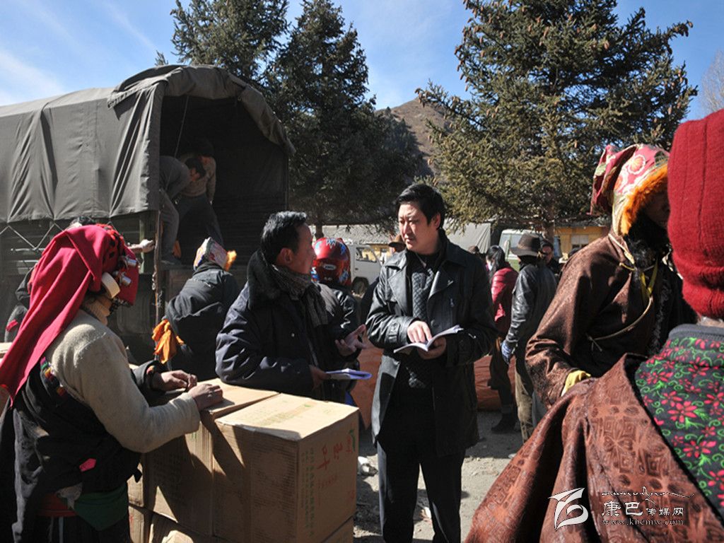 康定縣紀委工作人員在塔公鎮(zhèn)核查救災物資發(fā)放情況。