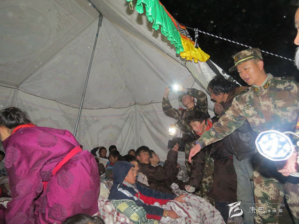 凌晨1時,在江巴村,60名官兵挨家挨戶搜救轉(zhuǎn)移群眾,連夜搭建救災(zāi)帳篷。“同志,我的小女兒拉姆找不著了,可能埋在房子里了……”澤仁阿巴急匆匆地拉著武警戰(zhàn)士的手求援,“你家在哪里?快帶我們?nèi)ィ?rdquo;未等四十歲的澤仁阿巴說完,官兵們奔向不遠處的一堆倒塌的房屋??紤]到有人埋在下面,官兵們不敢用鎬刨用鍬鏟,在另一面墻上石片不停掉落的情況下,仍然紛紛撲下身子扒拉土石結(jié)構(gòu)的殘垣斷壁,最終在兩個木箱中間找到了已哭成淚人的小拉姆,所幸6歲的拉姆安然無恙。