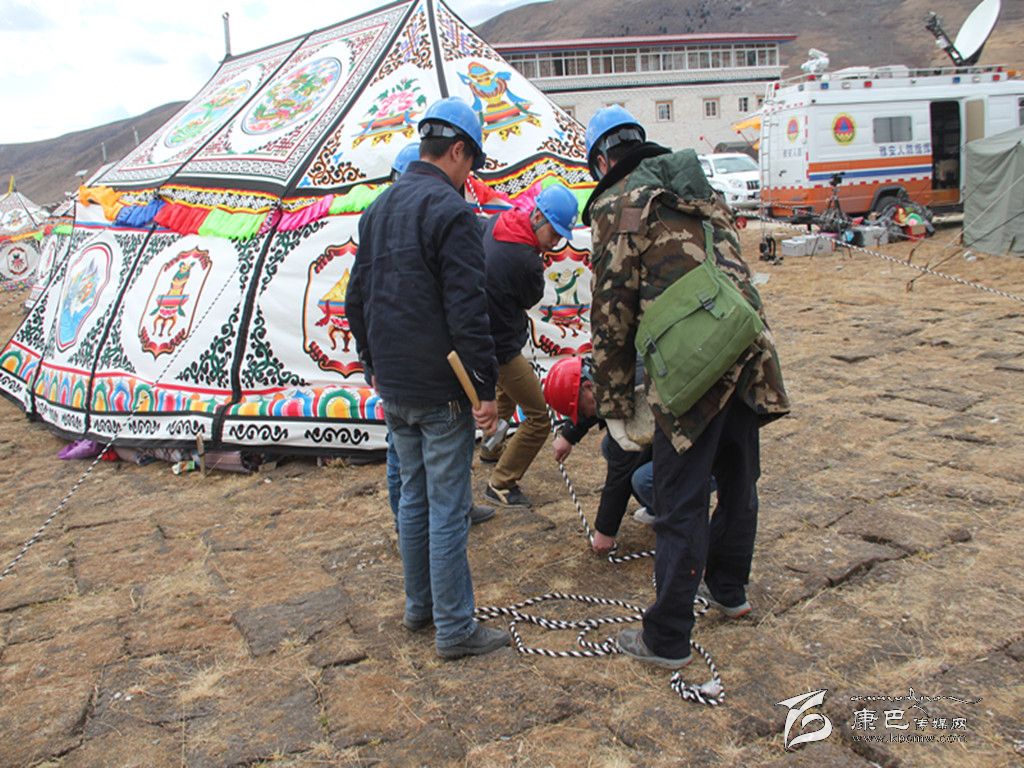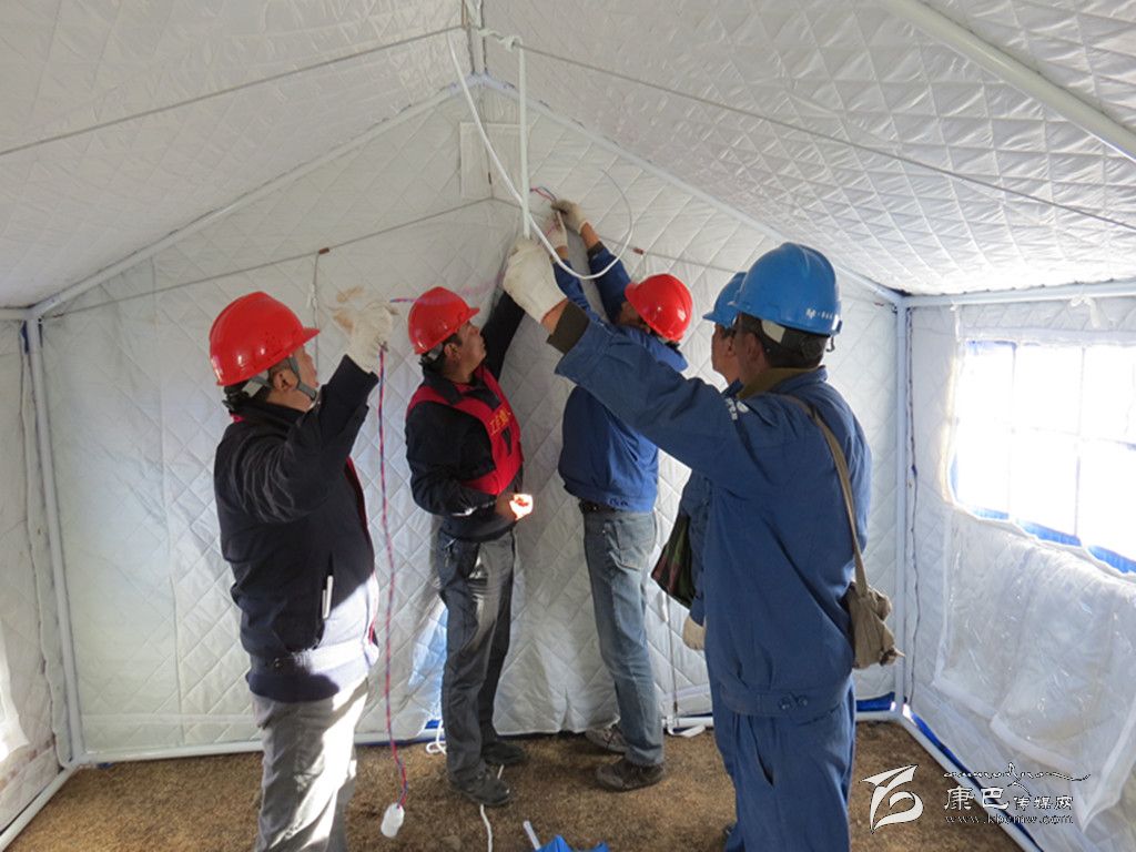 奪拉二村有4個變壓器臺區(qū),其中2個臺區(qū)為人員較多的木雅祖慶學校,地震使學校住宿樓變?yōu)槲7?,全校?000名學生轉(zhuǎn)移至學校空地上的安置點。為了讓安置點內(nèi)的受災(zāi)師生和應(yīng)急指揮中心盡快用上電,黨員突擊搶險小分隊不僅要在安置點迅速安裝應(yīng)急照明設(shè)施,同時還要從圍墻和學校食堂的樓頂上重新布放近3段2公里長的臨時電源線。學校圍墻因地震而搖搖欲墜,稍微用點力,墻、磚塊或水泥就會掉下來,面臨這一難題,公司黨總支沉著應(yīng)對,迅速組織塔公供電所與新都橋供電所的黨員干部趕往震中,同時安排其余供電所的黨員干部迅速增援。先期到達的救援人員在余震不斷發(fā)生的情況下,對受損供電設(shè)備及線路進行了緊急處理;在后期人員趕到后,公司黨總支迅速研究制定工作方案,科學分工:第一組黨員突擊搶險隊負責隱患排查,第二組黨員突擊搶險隊負責電線布放,第三組黨員突擊搶險隊負責救災(zāi)帳篷的照明安裝。在三個小組隊員的共同努力下,用近三個小時的時間就解決了應(yīng)急指揮中心、醫(yī)療隊和臨時安置點的照明安裝這一難題。