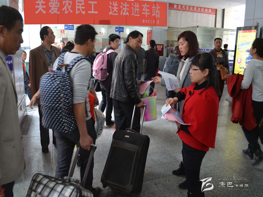 本網(wǎng)訊(宋華玉 記者 秦松 文/圖)“這個資料太實用了,讓我們可以了解自己的權(quán)益有哪些、勞動合同書是怎樣的。”當(dāng)在康定汽車站內(nèi)的農(nóng)民工拿到由州總工會發(fā)放的法冶宣傳資料時,他們?nèi)缫曊鋵毎愕卣J真閱讀著宣傳資料,或小心翼翼地把資料裝進行李中。4月5日至4月13日,州總工會在康定汽車站開展了“關(guān)愛農(nóng)民工、送法進車站”法治宣傳活動,正式啟動了“學(xué)雷鋒、慶五一”服務(wù)職工(農(nóng)民工)系列活動,拉開了州總工會2015年法制宣傳活動的序幕。