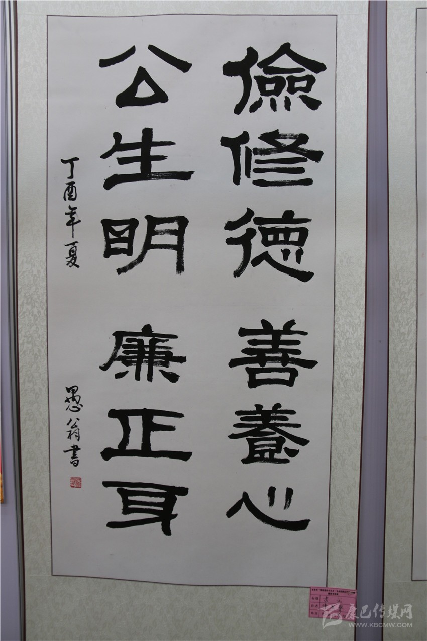 本網(wǎng)訊(記者 宋志勇 文/圖)“儉修德,善養(yǎng)心;公生明,廉正身?!薄爱?dāng)不住今天的誘惑將失去明天的幸福?!薄扒辶?/span>..........。隸書、行草、草書等一幅幅書法作品行云流水、飛揚灑脫。這是9月15日,由州紀(jì)委、州委宣傳部共同主辦,州直工委、州文明辦協(xié)辦的我州“喜迎黨的十九大?弘揚清風(fēng)正氣”主題廉政書畫展在康定劇場開展時,參與此次活動的作者以各自的方式創(chuàng)作出一件件主題鮮明的精美力作,既增強(qiáng)全社會反腐倡廉意識,也營造各族人民喜迎黨的十九大的濃厚氛圍。