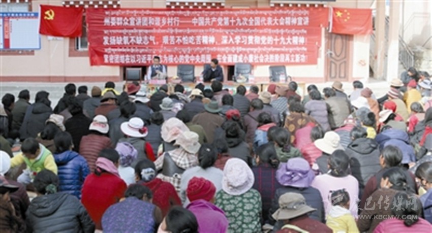 “藏語(yǔ)話”要講好。進(jìn)一步加強(qiáng)對(duì)縣級(jí)宣講員的培訓(xùn)力度,重點(diǎn)針對(duì)寺廟、基層鄉(xiāng)鎮(zhèn)干部群眾,用藏語(yǔ)向他們講清楚十九大精神內(nèi)涵,同時(shí)印發(fā)藏漢雙語(yǔ)宣傳資料,讓大家更好地領(lǐng)會(huì)十九大精神。