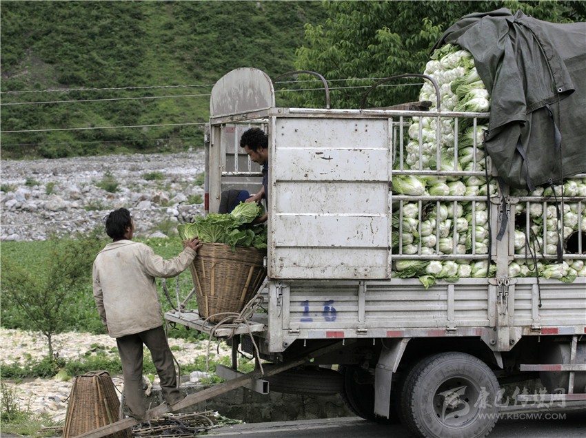 5月份以來,燕子溝鎮(zhèn)堡子壩片區(qū)每天都有5、6輛大車來村里拉大白菜,菜農(nóng)們天天早出晚歸,忙著給自己或幫別人裝大白菜??吹阶约业拇蟀撞速u了個好價錢,村民都樂開了花。