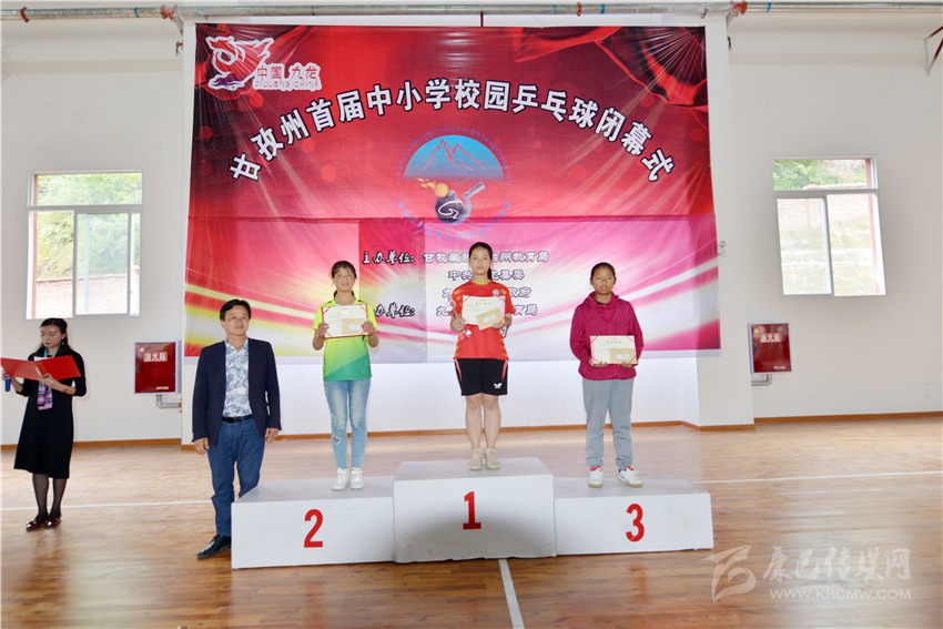閉幕式上,乒乓球裁判長向全體運動員宣布:甘孜州首屆校園乒乓球賽圓滿結(jié)束,此次比賽成績真實有效,符合賽事組委會預先制定的競賽規(guī)則。周敏吉、邱志明、唐定成、翁義分別為獲得小學組、初中組、高中(中職)組獲得女單、男單、混合雙打前三名的運動員頒獎。