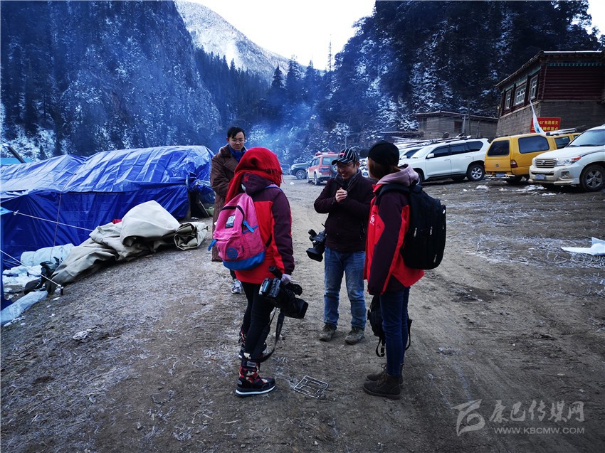 11月6日晚,甘孜日?qǐng)?bào)記者馬建華、張磊、余秋林和州廣播電視臺(tái)副臺(tái)長(zhǎng)何良忠、記者洛嘎、肯布及白玉電視臺(tái)記者連夜趕赴則巴村中轉(zhuǎn)站。26公里的崎嶇山路,冰雪道危險(xiǎn)重重,坡陡彎急,司機(jī)憑借經(jīng)驗(yàn)在坡度60度以上的暗冰道上行駛,經(jīng)過(guò)兩個(gè)多小時(shí)的艱難行進(jìn),采訪(fǎng)組終于入住前方救災(zāi)組搭建的救災(zāi)帳篷。深夜,大雪紛揚(yáng),帳篷里寒氣襲人。帳篷四周,狗叫聲不止,一條狗鉆進(jìn)帳篷,蜷縮在記者床鋪旁邊,因?yàn)樘?,記者們不忍心將它?qū)離。11月7日,白格堰塞湖庫(kù)容量達(dá)到2.71億立方米,白格堰塞湖形勢(shì)嚴(yán)峻,嚴(yán)重威脅我州金沙江下游群眾生命財(cái)產(chǎn)安全。一大早,10多公分厚的大雪扮美了村莊,卻給機(jī)具、救災(zāi)物資、救援人員進(jìn)出等帶來(lái)極大困擾?!拔覀兊耐诰驒C(jī)司機(jī)在山上被大雪困了一夜,徒步到中轉(zhuǎn)站休息了三個(gè)小時(shí)又到山上去作業(yè)了,你們應(yīng)該去采訪(fǎng)一下。”州政府副州長(zhǎng)何康林說(shuō)。