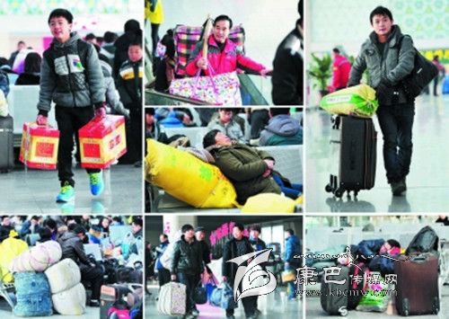 盡管旅客身上都背著厚重的行囊,盡管旅客特別多,但是每個(gè)旅客的臉上,都只寫了兩個(gè)字——“回家”。