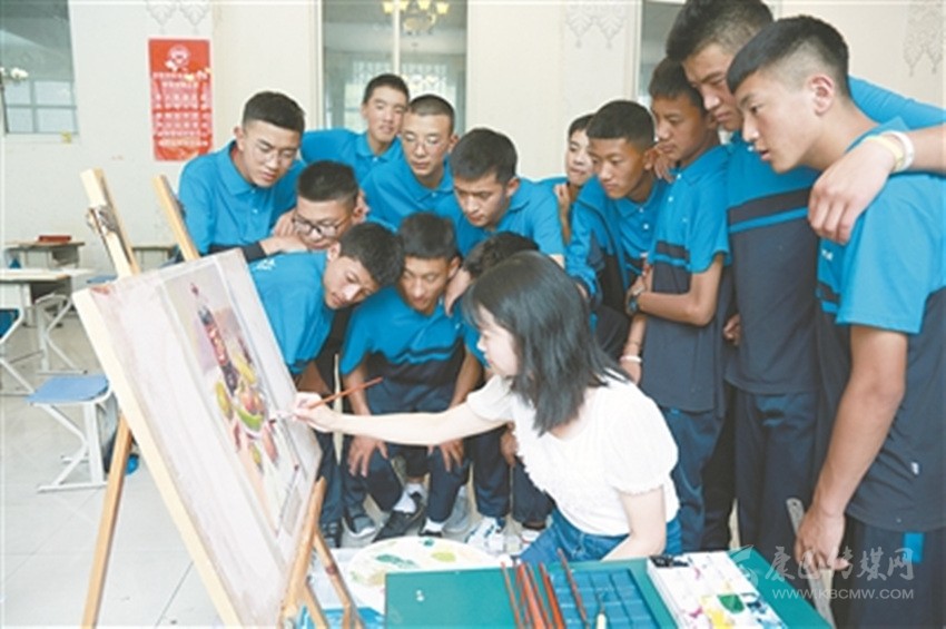 美術(shù)專業(yè)在進(jìn)行油畫(huà)實(shí)踐教學(xué)。