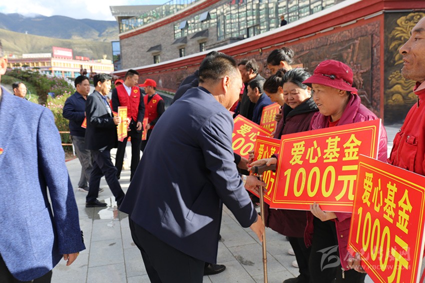 “以捐款的形式助力扶貧濟困,為的不僅僅是經(jīng)濟上的資助,更為重要的是精神上的鼓舞,我們希望在進一步增添貧困戶走出困境的信心和動力的同時,引導(dǎo)全社會更加關(guān)注貧困問題、關(guān)愛貧困人口、關(guān)心扶貧工作,團結(jié)社會各界凝心聚力、共同邁向幸福生活?!笨h委副書記甲花多吉說。