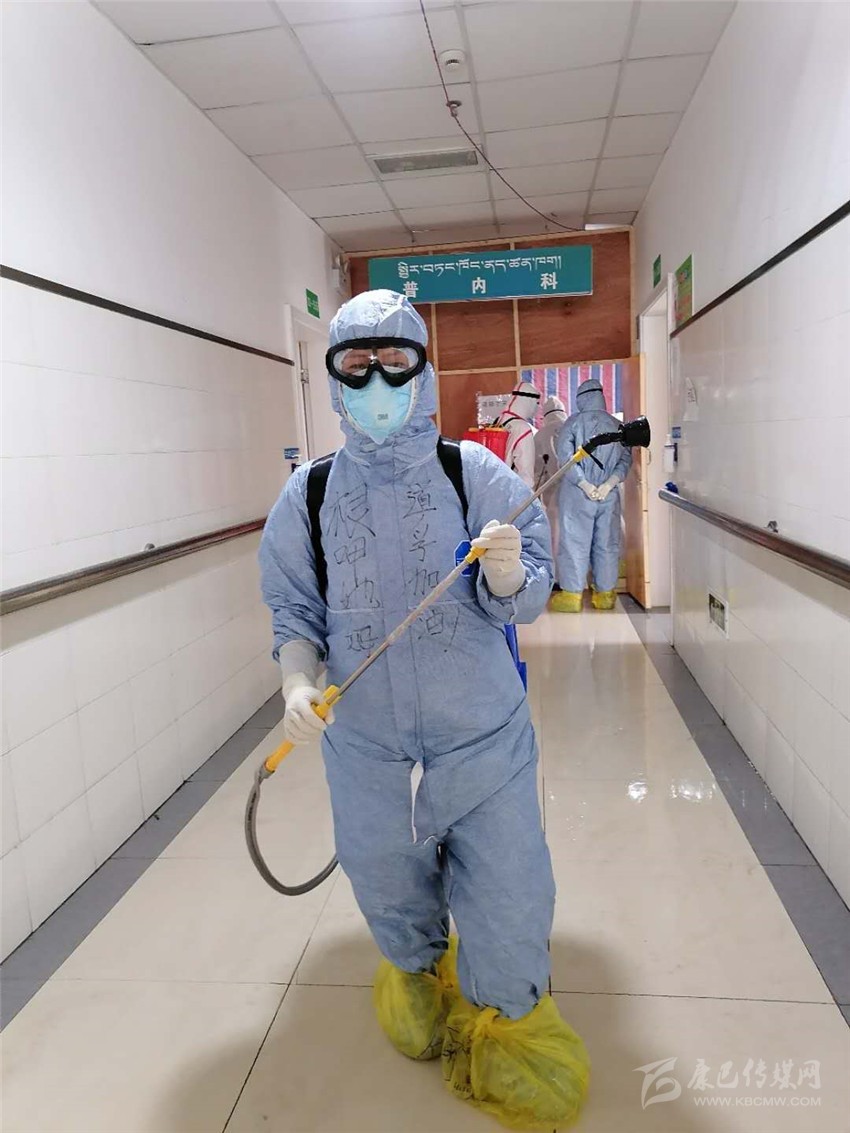除了日常護(hù)理,根呷她姆的還要負(fù)責(zé)每日病房的消毒工作、垃圾清理以及清潔衛(wèi)生工作。“消毒工作格外重要,必須做到不漏一個(gè)死角?!备人窂?qiáng)忍著84消毒液刺激引起的嗆咳及生活垃圾引起的惡心發(fā)嘔,一絲不茍,任勞任怨,做好每一天的消殺清潔工作,讓病毒無(wú)處遁形。在同事面前她是護(hù)士長(zhǎng)、家長(zhǎng),在病人面前,她是護(hù)士、護(hù)工、清潔工、家屬、心理老師……根呷她姆每天在各種角色間轉(zhuǎn)換自如,不怕臟、不怕累、不怕苦,拼盡全力只為打贏這場(chǎng)沒(méi)用硝煙的戰(zhàn)爭(zhēng)!