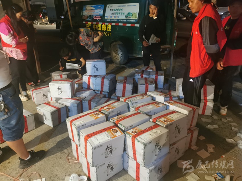 圖為甘孜郵政收寄松茸現(xiàn)場(chǎng)。