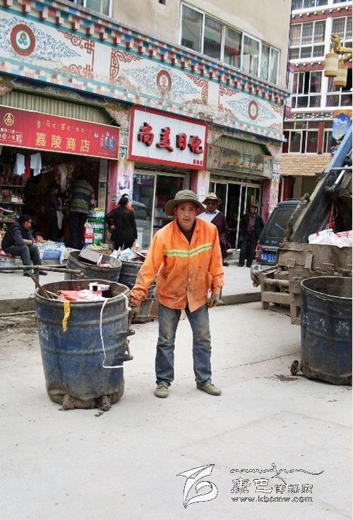 環(huán)衛(wèi)工人都有各自的責(zé)任區(qū),降多吉除了把自己的責(zé)任區(qū)打掃得干干凈凈、管理得井井有條外,他還義務(wù)擺放定點(diǎn)垃圾箱,幫助女職工清掃街道。每逢節(jié)假日,是垃圾產(chǎn)生的高峰期,加班加點(diǎn)自然也就在所難免。今年農(nóng)歷春節(jié)和藏歷新年期間,由于兩個(gè)新年相隔一個(gè)月,而當(dāng)?shù)馗刹咳罕姴坏袃蓚€(gè)新年一起過(guò)的習(xí)慣,而且都過(guò)得歡天喜地。節(jié)日期間,縣城垃圾倍增,他所負(fù)責(zé)的區(qū)段尤為突出。寒冷的冬季,由于呼呼的狂風(fēng),垃圾滿天飛,哪怕每天清掃五六次,哪怕起早貪黑不間斷,他依然頂風(fēng)冒雪、默默堅(jiān)守。大年初五,由于連續(xù)幾天的“早六晚九”和饑餓、寒冷、勞累,他一頭栽倒在地。打了兩天點(diǎn)滴之后,他又重新投入到了工作中。