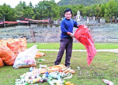 5月6日是康定縣一年一度“四月八”跑馬山國際轉(zhuǎn)山會,上萬人在跑馬山上祈福游玩。5月7日在一家爆料網(wǎng)站上一位網(wǎng)友發(fā)布了一篇名為《甘孜康定跑馬山萬人轉(zhuǎn)山會后垃圾遍野》的微博。微博原文中說:“2014年05月06日,四川省甘孜藏族自治州,滿負(fù)荷的垃圾桶。跑馬山景區(qū)垃圾遍野。當(dāng)天是農(nóng)歷四月八轉(zhuǎn)山會,景區(qū)免門票,至少有上萬游客涌入景區(qū),參加轉(zhuǎn)山會活動(dòng)。”針對該網(wǎng)友爆料的情況記者走訪了康定跑馬山景區(qū)。在景區(qū)現(xiàn)場記者的確見到大量的垃圾“橫尸遍野”。藍(lán)天白云、青青草地真可謂詩情畫意,可是眼前的美景卻被無數(shù)的垃圾破壞。不知何時(shí)起旅游、垃圾仿佛成了連體嬰兒,甩也甩不掉,什么時(shí)候長假、旅游與垃圾才能隔離開來呢?帶著疑問記者采訪了景區(qū)相關(guān)負(fù)責(zé)人。