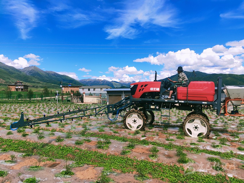 澤仁措務工之處是位于他家附近的白玉縣贈科現(xiàn)代農業(yè)產業(yè)園區(qū)的萬畝核心種植基地,園區(qū)內推廣流轉種植了藏菊花、藜麥、高原有機蔬菜、中藏藥材等共4500畝,園區(qū)主打種植藜麥、菊花等農特產品,目前已實現(xiàn)規(guī)模化、連片化、機械化種植。種植基地為11個建檔立卡戶提供了長期固定崗位,園區(qū)建設通過土地流轉、村民就近務工等渠道,促進助農增收多樣化,已兌現(xiàn)勞務費180余萬元。同時,贈科鄉(xiāng)的依里村、上比沙村、下比沙村通過土地流轉,兩年多來憑借土地流轉獲得280余萬元的收益。